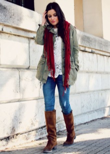 La combinació d’una jaqueta-jaquetes i un voluminós esquinç probablement no passarà de moda. Aquesta combinació és rellevant durant diversos anys seguits.