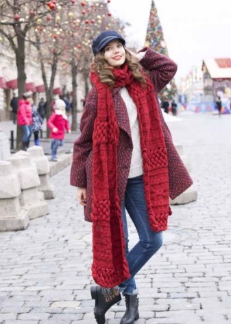 El teixit gruixut i descurat és ara el líder indiscutible. La segueixen els patrons de caixmir. A l’hora d’escollir un mocador aquesta temporada, és millor triar teixir amb una banda elàstica gran o trenes voluminoses. Un ornament com aquest té un aspecte perfecte amb la pell de Borgonya. Els teixits de punt gruix s’adapten a jaquetes i abrics clàssics o a les jaquetes d’estil esportiu.