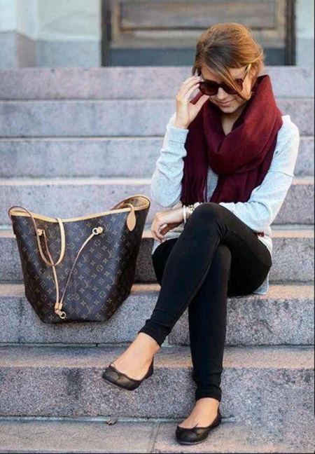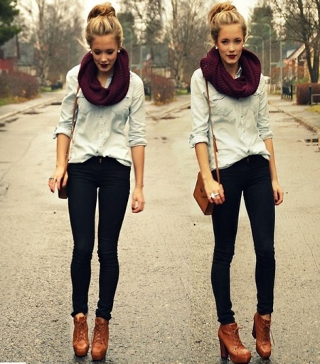 - Una bufanda pot convertir-se en un element independent o en combinació amb un element d'imatge del mateix color. Per exemple, pantalons i mocador d’una sola ombra.
