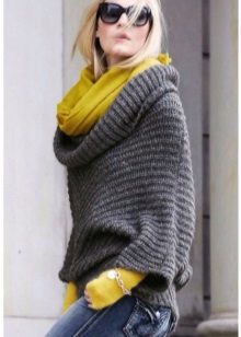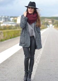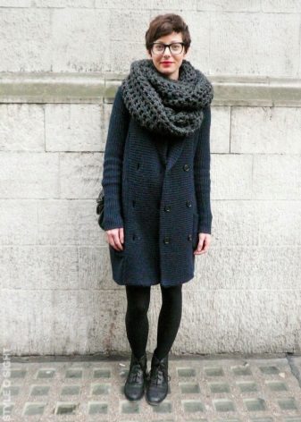 La tercera imatge és una excel·lent versió hivernal de portar un collet. Si es desitja, es pot portar una bufanda drapejada de punt gran i càlid, o embolicar-la de nou al coll. Va bé amb un abric càlid de gris gran punt similar.