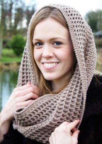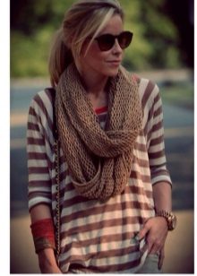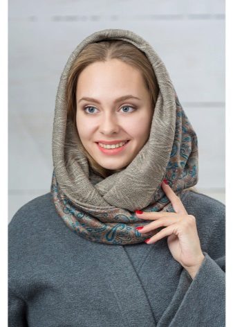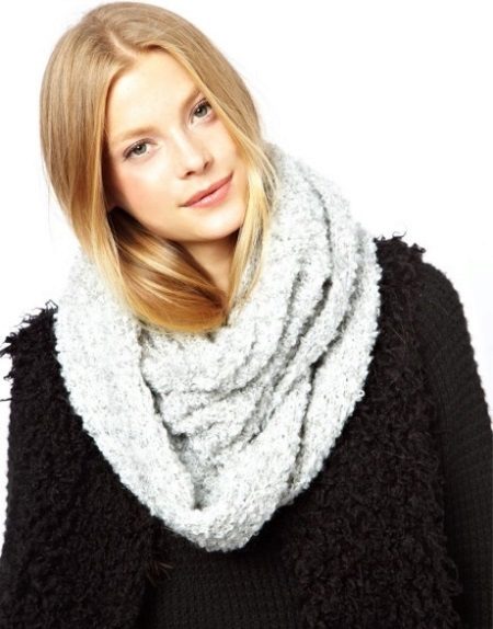 - actualització i complementació de la imatge: aquest accessori fa que quedi més visible i elegant, actuant com un element que crida l'atenció immediatament; fins i tot la roba senzilla comença a jugar amb nous colors; per exemple, podeu cobrir un escot lleugerament indecent amb una bufanda interminable, o bé utilitzar un snood de setí com a complement d’una suite d’oficina;