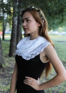 - curt: aquests accessoris a distància semblen un collet ampli, fabricat amb materials càlids, ajustats al coll, que es pot retallar; menys: no es poden portar al cap;