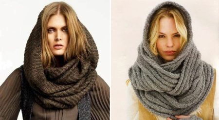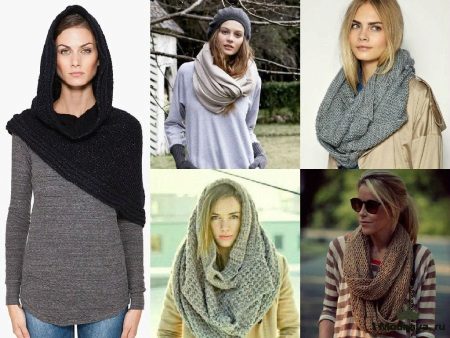 - universalitat: hi ha models de molla clara que es poden portar amb una jaqueta de pell o un abric lleuger; Hi ha opcions força denses que es combinen amb la roba interior d’hivern; Hi ha diversos colors i estampats situats al mocador de vuit figures, així com una varietat de tècniques de teixir de punt que emfatitzen el grau d’implicació de l’amfitriona en el món de la moda i l’estil;