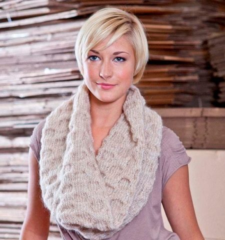 - practicitat, a diferència d’un mocador de cercle ordinari, no cal ajustar-se constantment i assegurar-se que no es desfaci: el producte s’ajustarà perfectament al coll afegint fibres artificials al teixit o penjat amb bonics plecs; a més, no us heu de preocupar d’escollir una manera de lligar l’estola;