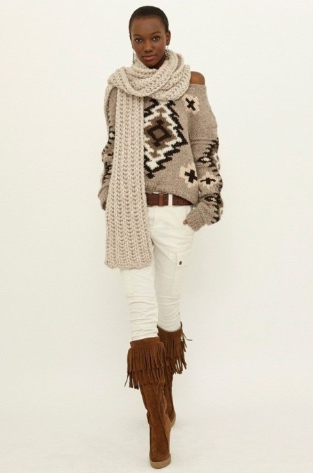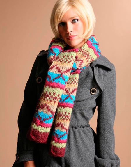 Potser, només els productes Lion Brand es poden comparar amb la qualitat dels accessoris d’aquesta empresa. L'última marca produeix models reals i únics de bufandes de punt, que es convertiran, sens dubte, en el principal "element més destacat" de la imatge.