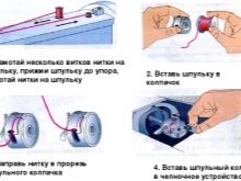 - A continuació, enfila el fil. D'altra banda, el repostatge s'ha de produir en una seqüència estrictament definida. Per tant, primer heu de fer això des d'una bobina o bé rodar mitjançant una guia de fil. Després d’això, entre les rentadores del regulador, comproveu la tensió del fil. A continuació, enfilem el fil a la guia del fil a la capçalera de la màquina i a la guia del fil al suport de l'agulla. A continuació, enfilem el fil a l’ull de l’agulla.
