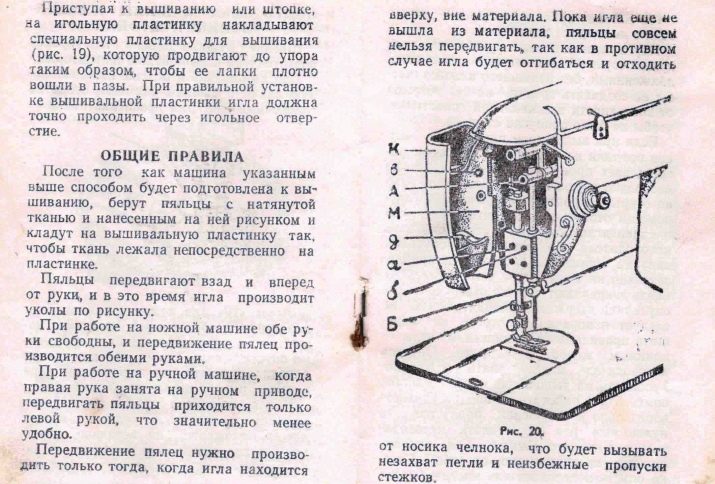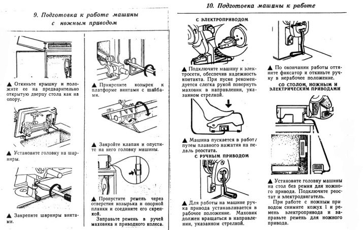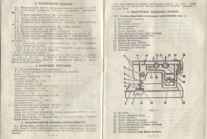 A la secció Requisits generals, trobareu les regles per instal·lar l’agulla i el volant de mà. La necessitat de la lubricació regular també es nota aquí: la màquina s'ha de lubricar amb oli especialment dissenyat (per exemple, es pot utilitzar I-20A GOST 20799-88).