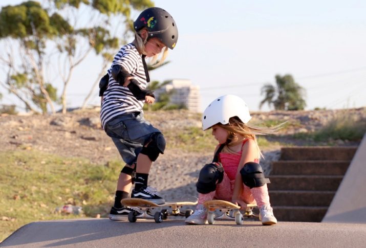 Un jove skateboarder necessita sens dubte protecció per evitar lesions que es produeixin durant una caiguda. Generalment El kit bàsic inclou casc, coixins, coixins i recolzaments de canell.
