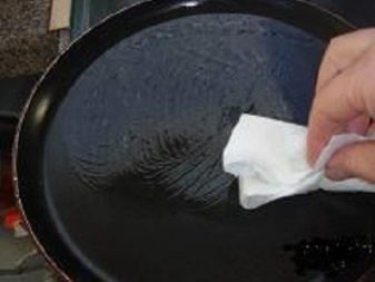 Abans d’utilitzar la cassola de ceràmica, esbandiu-la amb aigua, eixugueu-la en sec, poseu-la al foc, tireu-hi una gota d’oli. El revestiment està molt aviat saturat d’oli i en un parell de minuts podreu fregir creps en una paella nova.