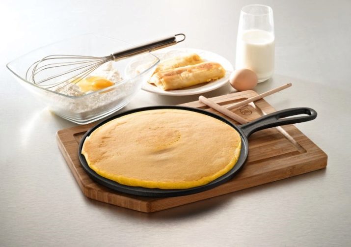 Una paella de ferro colat no té un recobriment especial antiadherent, però si s’aboca oli en ell, el material en si mateix es torna antiadherent. Com més llarga és la paella de ferro colat, més delicioses crepes s’hi fan: una paradoxa de cuina. Però només es pot cridar una safa ideal de fosa amb la condició que no hi fregiu res. Absorbeix bé les olors i les creps després d’altres plats cuinats amb fosa seran una mica estranys al gust.