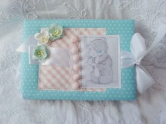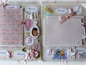 En primer lloc, cal determinar l’esquema de colors, per als nois tradicionalment és blau, per a les nenes és de color rosa. Però no cal que seguiu aquestes formes establertes. Es veu impressionant qualsevol ombra en una suau paleta pastel - llet, nata, menta, turquesa, fawn, llimona, gris. Per als nois, per regla general, utilitzen una decoració més brutal - cotxes, pirates, per a noies més delicades - princeses, nines, óssos. L’àlbum està format pels mesos de vida del nen, cosa que permet organitzar informació.