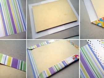 - Un cop creat el blanc, podeu elaborar la coberta. Feu la primera i la darrera pàgina per separat, però comenceu sempre amb la primera.Per fer-ho, enganxeu el cartró amb paper de ferralla de la impressió necessària, tallada a la mida del full de cartró. Recordeu fer forats a les dues cobertes. La part posterior de la coberta es realitza segons el mateix algorisme.