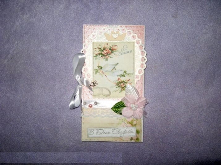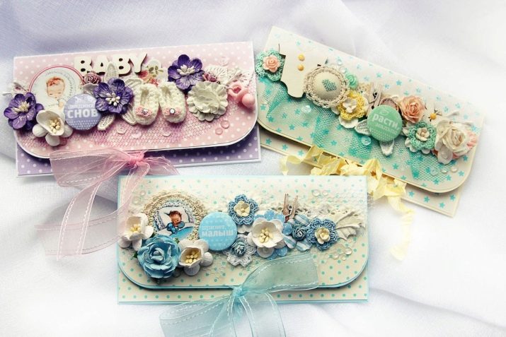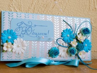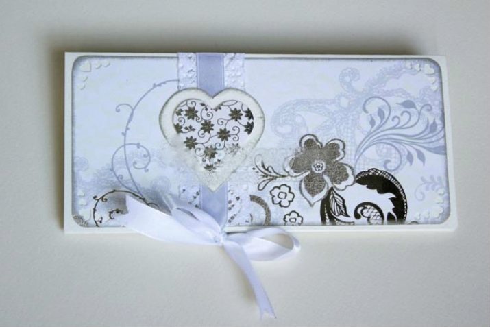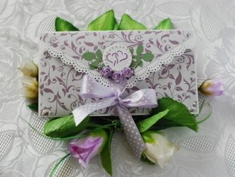 Experimenteu les idees, compareu diverses opcions per a composicions de sobre, proveu diversos tipus de paper de ferralla i vegeu què és més luxós i car. Quan recopileu la composició amb més èxit, coleu els detalls, lligueu les cintes: el vostre sobre ja està a punt Podeu invertir i córrer per felicitar el marit i la dona recentment fets.