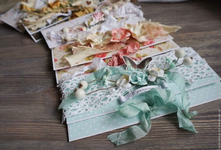 - Ara, entre tots els detalls per decorar, podeu afegir la composició original: de nou, tot és arbitrari, al vostre gust. Posa la felicitació de la inscripció, determina on vols veure els adhesius i les perles, a les vores l’encaix i els botons semblaran molt impressionants. L’element més bonic serà una o més flors decoratives que es poden embolicar amb una cinta o cinta de tela setinat. I podeu embenar tot el sobre amb una cinta, de manera que serà més dens.