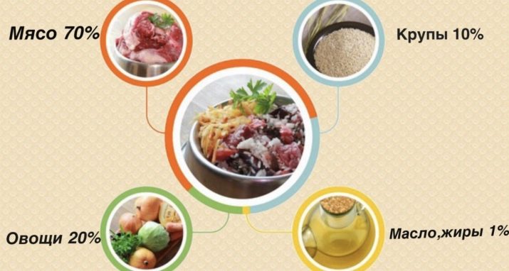 - carn fresca de pollastre o vedella, així com qualsevol altre abocament, que hauria de representar més del 70 per cent de la dieta diària total;