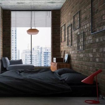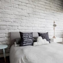 - una paret de maó gris o blanc feta de gres o maó de silicat, a més de la seva imitació, és adequada per decorar un dormitori a l'estil del golf. ?