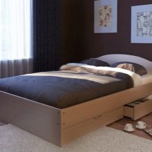 - El llit. La millor opció és un llit amb una amplada d’1,6 m, un podi (sobre el qual s’ubica un matalàs gruixut), un sofà plegable o un llit integrat a l’armari. Un avantatge addicional aportarà calaixos situats a la part inferior dels mobles del dormitori.
