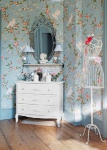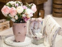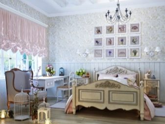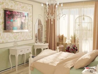 Entre d’altres elements no menys originals de la decoració, podem distingir les gàbies d’ocells de metall, fetes amb l’esperit de l’antiguitat. A més, al dormitori podeu posar una petita cistella de vímet amb un ram o decorar el vestidor amb una olla de flors. Els gerros de ceràmica també s’ajusten de manera molt harmònica a aquest disseny.
