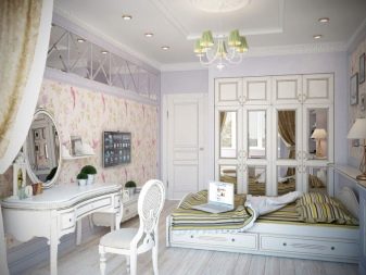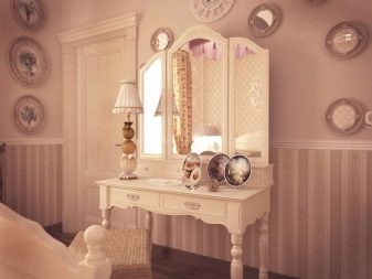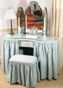 El disseny dels mobles pot ser variat. Per exemple, les potes del mateix armari o el cofre no només poden ser típiques, sinó també corbes, decorades amb talles. La femta de la tauleta de vestuari pot tenir la forma original d'un seient de coixí.