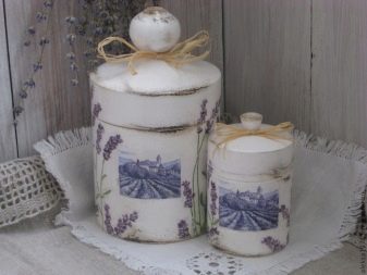 Si voleu decorar un dormitori d'estil provençal, podeu fer manualitats mitjançant la tècnica de decoupage. Per exemple, es poden decorar gerres de vidre o grans espelmes decoratives. També en aquesta tècnica podeu donar l’aspecte desitjat a una caixa regular. Si teniu certes habilitats, podeu complementar la composició interior amb una caixa d’agulles en forma de barret, col·locant-la sobre el tocador.
