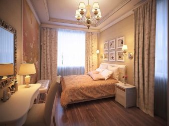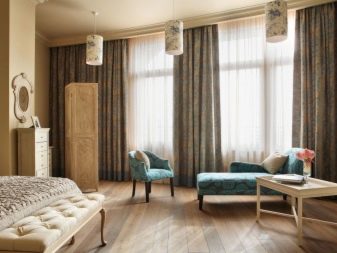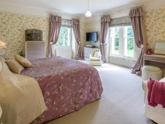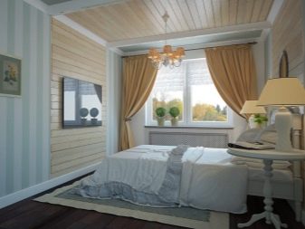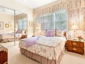 Segons la tria del disseny, la quantitat de tèxtil a l’interior del dormitori pot variar. Tanmateix, independentment d’això, hauria de ser natural, fet amb una discreta impressió floral o en una gàbia mullada. Les cortines de la finestra no han de ser gruixudes i denses. La ingravidesa és important, però perquè les cortines tèxtils han de ser lleugeres o fins i tot airejades.