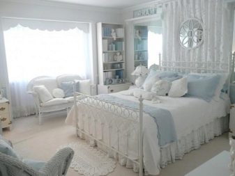 Entre d'altres coses, sovint al dormitori d'estil provençal, s'utilitzen tovallons tèxtils com a decoració. No decoren seients de mobles, sinó també tapes de vanitat. Si voleu utilitzar una foto en un marc com a element decoratiu, la imatge ha de ser en blanc i negre. El marc en si hauria de ser de fusta sense gaire adorn.