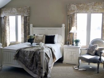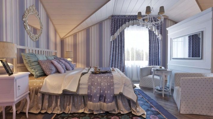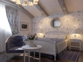 - Opció per arreglar el dormitori provençal al pis de les golfes.