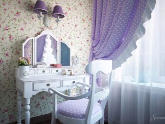 No oblideu tot tipus de farcells i voladisses, que, de fet, són elements recognoscibles de l’estil provençal. A més, podeu decorar tèxtils amb retalls de ganxet originals. Es permeten diversos plecs al llarg de les vores de la tapisseria i les cortines. Es poden complementar cortines amb una gran quantitat de cintes, així com punts i brodats (tant de màquina com de manual).