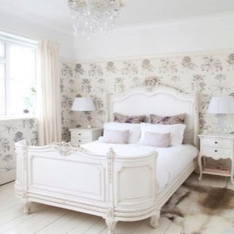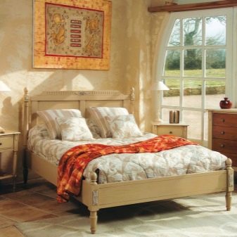 Els mobles de dormitori d'estil provençal poden ser diferents. Per exemple, un llit pot ser un autèntic rookery que ocupa molt d’espai. D’acord amb els cànons d’aquest estil, el llit francès és ampli, decorat amb una capçalera gran, sovint arrissada. A més, es pot forjar o esculpir, i les cames del llit són sovint esquatades.