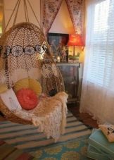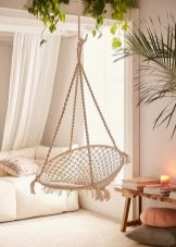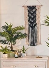 - Decoració. Bé, si la decoració de l’habitació hi ha lloc per a manualitats. Es veu molt bonic i bonic per sobre de la capçalera del tauler en forma de treball mitjançant la tècnica de macramat. Macrame experimenta avui un altre auge de popularitat i això no dista gaire de l'afició costosa.