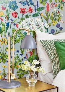 - fons de pantalla amb una gran estampa floral: flors grans en un fons de color verd tranquil que és una solució realment bona per a una habitació que no aguanti l'enrenou;