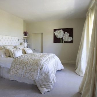 - Tèxtils. Els materials naturals són una prioritat. Els colors i les estampes han d’evocar una associació agradable. Però lloreja, serrells rics, encaixos, guipures i així successivament (per exemple, flors grosses al llençol) - un dia d’ahir. El dormitori pot semblar elegant (tot i que això és molt controvertit), però gens càlid i poc acollidor.