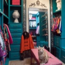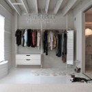 Si es forma mitjançant una partició de placa de secà sense porta, podeu enganxar les parets resultants amb paper pintat al vostre gust o pintar-les. Al seu interior, el fusible creatiu ja no es pot restringir per res, perquè aquest és el seu espai personal i pot semblar qualsevol cosa. El més important és que en aquest entorn t’agradaria presentar noves imatges i transformar-les. Per no confondre’s amb l’assortiment de coses, cobreix els calaixos amb retalls de revistes que indiquen el contingut: hi ha suèteres, sabates i així successivament.