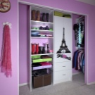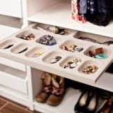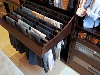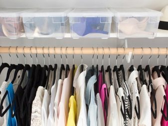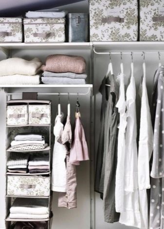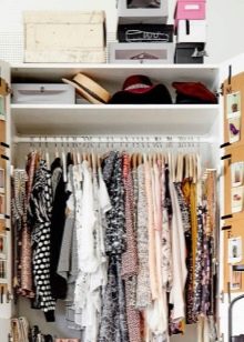 - Abans d’iniciar-vos en la realització de la vostra idea de disseny, penseu en quin és el nombre aproximat de coses que teniu i quines més sovint es troben en el vostre arsenal. Alguns només necessiten prestatges, d’altres són més còmodes penjats als penjadors, a les varetes, i d’altres es guarden preferentment als calaixos o fins i tot a les cistelles obertes. Així doncs, els pantalons s’adapten de manera més compacta si es pengen als penjadors, però el caixmir, per contra, es plega.