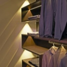 Considereu acuradament la il·luminació del vostre racó de l’armari. A ningú li agrada cercar el fet correcte a les fosques, i més encara quan es tracta d’un lloc especialment equipat per a la roba. L’ideal és que necessiteu un cablejat addicional, cosa que farà que la il·luminació sigui el més còmoda possible. Si hi ha espai lliure, col·loca boniques làmpades que es col·locaran de manera que us pugueu veure clarament al mirall. A diferència de l’armari del vestidor, podeu muntar bons llums brillants que us ajudaran a navegar bé.