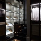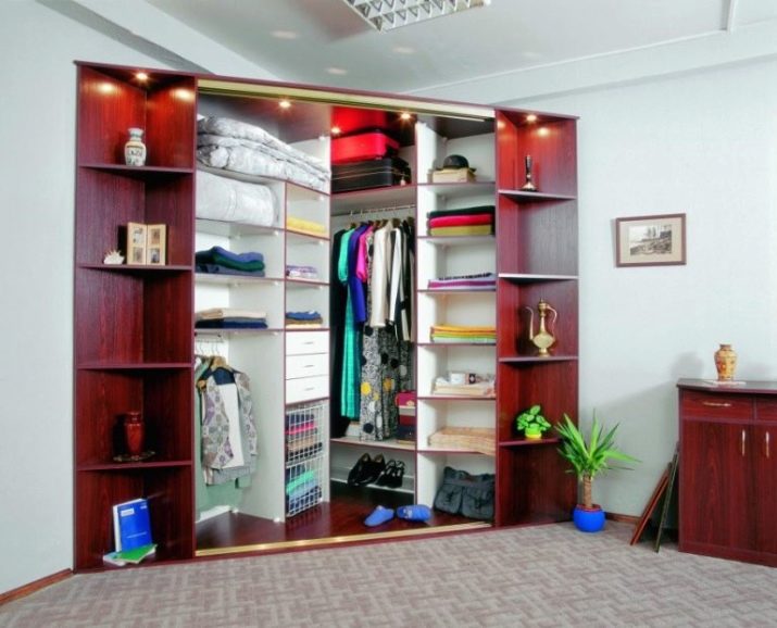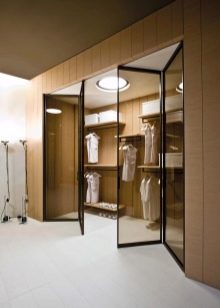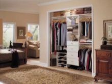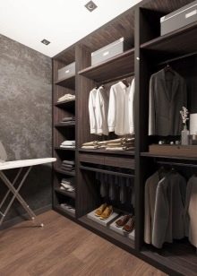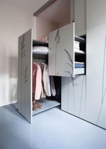 - l'armari d'entrada és adequat per a un gran dormitori amb un disseny modern i insòlit, es troba al bell mig de l'habitació i està separat per separacions a banda i banda alhora;