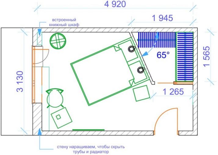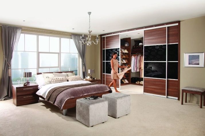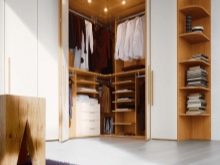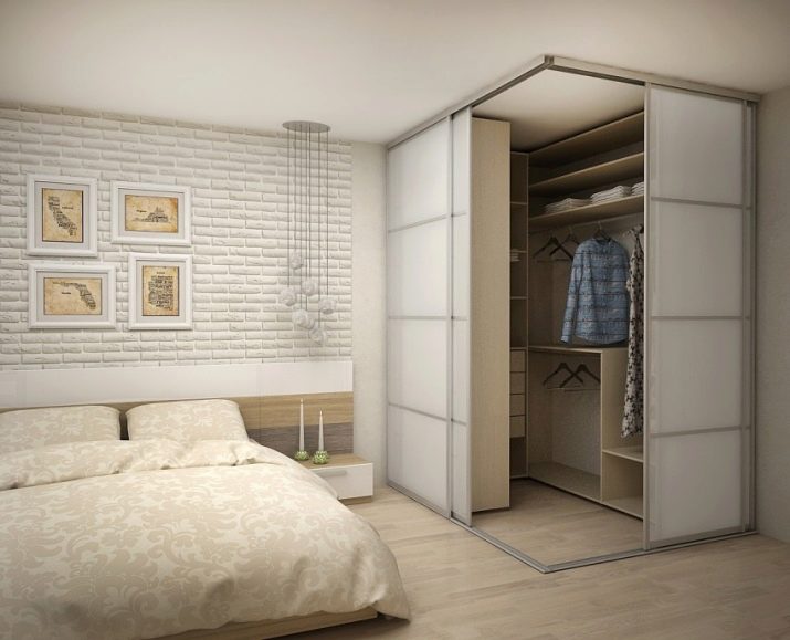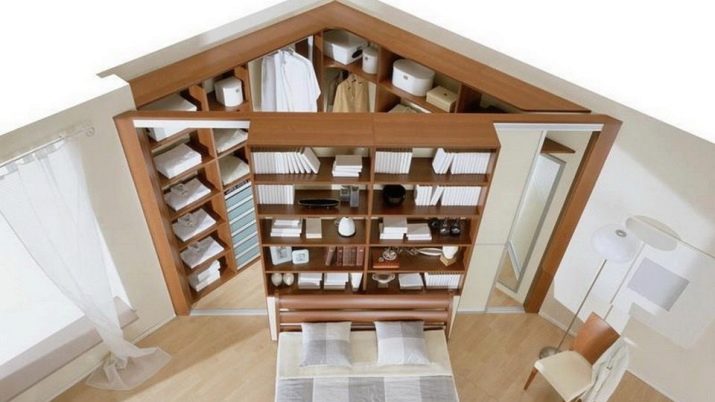 - en un dormitori amb una àmplia zona, podeu tancar una cantonada, obtenint així un vestidor d'una forma inusual - triangular;