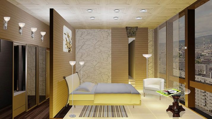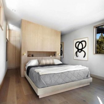 - en una llarga sala rectangular podeu col·locar un llit a prop d’una gran paret i un vestidor - al costat;