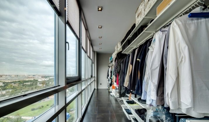 - Una opció interessant, popular en els apartaments de tipus nou: utilitzar una gran loggia contigua al dormitori com a vestidor, però no hauria de ser l’única font de llum natural a l’habitació, però hi hauria d’haver-hi altres finestres.