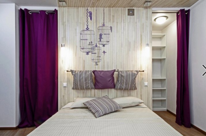 Si voleu que el vestidor només us ho vegi, i aquest lloc sempre ha quedat amagat dels ulls indiscretos, utilitzeu el teló. En aquesta versió, complementen la gamma pastel de l’interior general de l’habitació i amaguen perfectament l’armari.