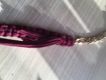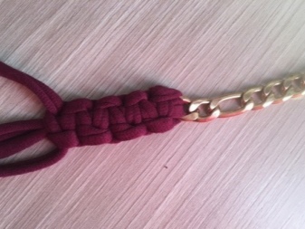 S'obre una samarreta vella i es talla en cintes. L’amplada de les tires es pot triar al vostre gust. No cal processar les seccions obertes. Permeten torçar una mica les vores de les tires.