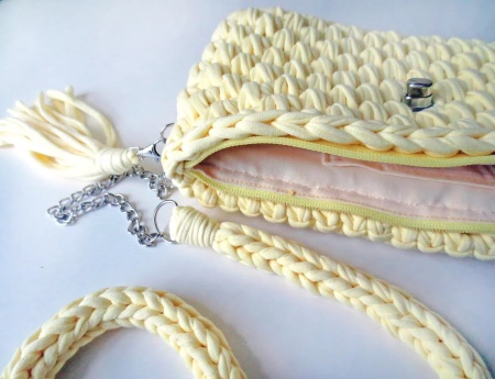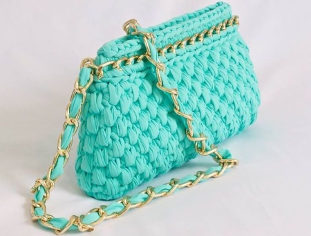 El fil de punt us permet teixir una bossa de qualsevol forma. El resultat d’un ganxet d’aquest fil pot ser una increïble bossa d’embragatge o una bossa capaç, una bossa per a la vida quotidiana.