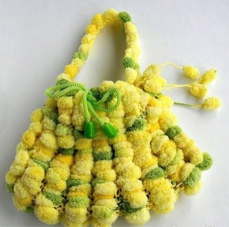 Les artesanes prefereixen aquesta opció per a la fabricació de coses infantils. Però, en mans especialitzades, un fil amb pompons us permetrà crear una bossa de dona impressionant.Les pompons actuaran aleshores com a acabat del producte.