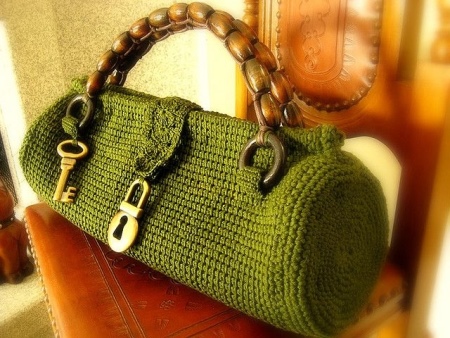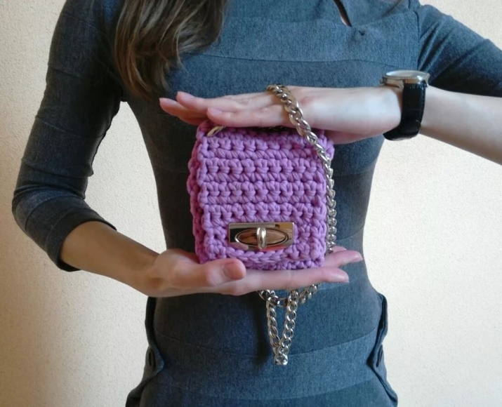 Un petit maletí glamurós sembla ultra de moda i incomparable. Per crear-lo, heu de preparar filats de punt, un ganxo de la mida adequada i un fermall de metall.