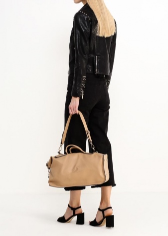 Els models decorats amb un cos als costats de la façana tenen un aspecte elegant i original. El dissenyador utilitza una tècnica magistral, donant un relleu de textura als llocs adequats. Així doncs, una bossa lacònica esdevé un accent exquisit i discret d’una imatge femenina. Tot és necessari un logotip modest, una cremallera i una cadena perfecta per completar la composició.