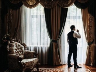 Si el casament té lloc en qualsevol esquema de colors, val la pena escollir una habitació amb un esquema de colors similar a l’interior. Això permetrà combinar la foto de tot el dia amb un sol fil de color, i no colpejar la foto amb el nuvi fora de la multitud.