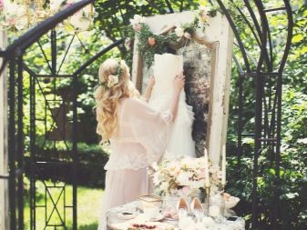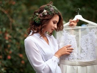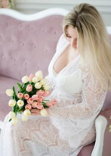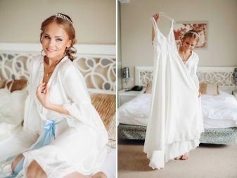 - La roba per rodar el matí de la núvia està seleccionada amb un estil suau. Pot ser un peignoir lleuger de to clar, una bata de seda clara i una roba interior bonica. Tot i això, hi pot haver altres opcions. El principal és que el model se senti bell i natural.