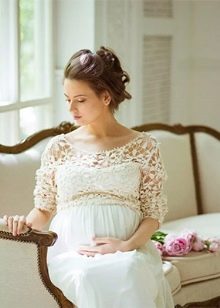 - Les fotos de les nenes embarassades del vestit de casament es veuen bé. En aquest cas, els plecs del vestit amaguen la cintura.