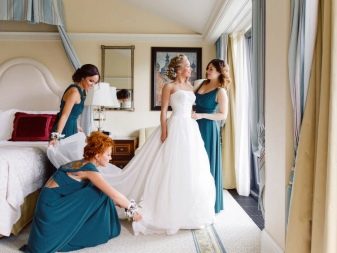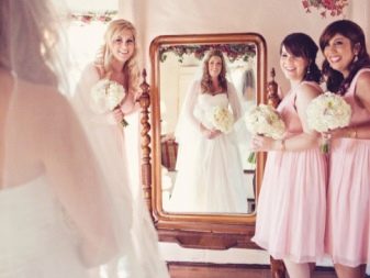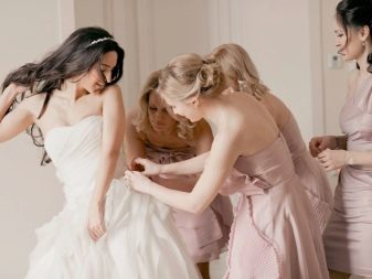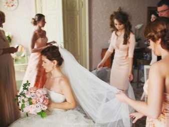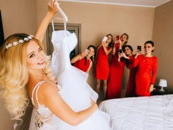 - Mentre porten un vestit de núvia, la núvia, els seus amics i els pares també es poden posar davant de la càmera. Les principals etapes de vestir el vestit, com fixar el vel, tirar de mitges, guants, vestir-se davant del mirall, apretar els cordons sempre resulten bonics i espectaculars.
