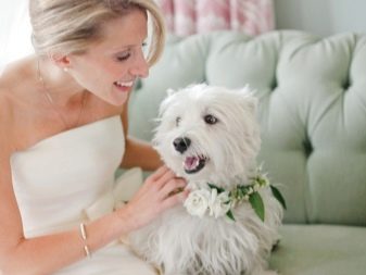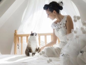 - Si hi ha animals a la casa, també es poden fer servir al marc. Un només s’ha d’assegurar que no hi hagi cap mal al vestit de núvia. Una noia i els seus amics poden posar-se amb un gat. La núvia es pot fotografiar a l'aire lliure amb un gos a la corretja. Els animals o ocells petits es poden fotografiar de primer pla als braços del model o a la cara. Podeu llogar conills o chinchillas. Aquestes fotos semblen molt maques i suaus.